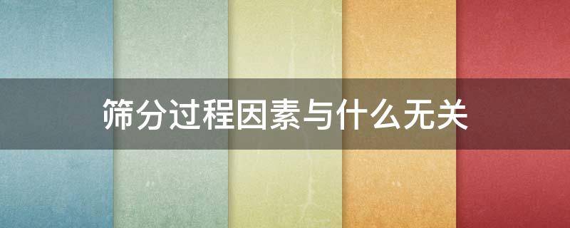 筛分过程因素与物料的粒径大小无关,与物料的含水量、筛面的长和宽、操作条件有关。筛分是将粒子群按粒子的大小、比重、带电性以及磁性等粉体学性质进行分离的方法。用带孔的筛面把粒度大小不同的混合物料分成各种粒度级别的作业叫筛分。用筛孔尺寸不同的筛子将固体物料按所要求的颗粒大小分开的操作。常与粉碎相配合,使粉碎后的物料的颗粒大小可以近于相等,以保证合乎一定的要求或避免过分的粉碎。筛分一般适用于较粗的物料,即大于0.5或0.25毫米的物料。较细的(小于2毫米)则采用分级,分级是根据物料在介质(水或空气)中沉降速度的不同而分成不同的粒级的作业。