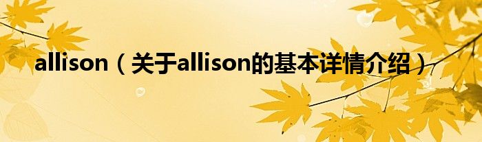 allison(关于allison的基本详情介绍)