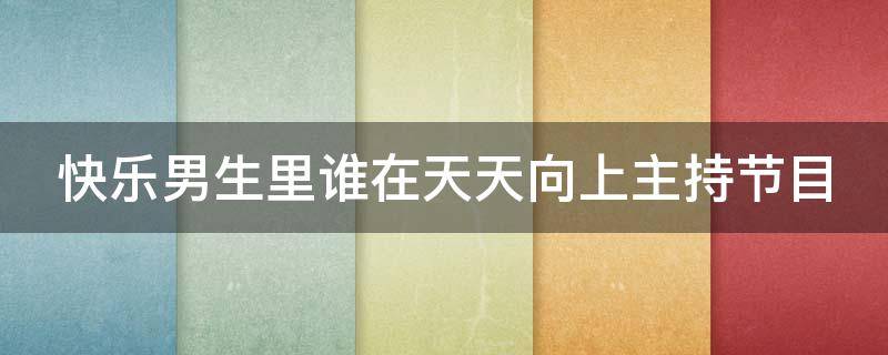 快乐男生里没有谁在天天向上主持节目。2022年天天向上的主持人有汪涵、齐思钧、吴泽林。《天天向上》是湖南卫视推出的娱乐脱口秀节目,节目以传承中华礼仪文化和倡导社会公德为主旨,每期邀请演艺明星和社会特色群体以及企业界的知名人士作为嘉宾参与访谈和表演。节目于2008年8月4日在湖南卫视首播,2018年7月30日,湖南卫视大型公德礼仪文化脱口秀《天天向上》十周年盛典在长沙举行,节目组也以十周年为契机举行了媒体探班会。2022年,节目升级舞美,并新增改变未来的五分钟演讲环节。
