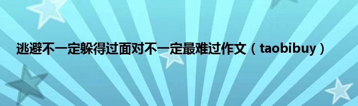 大家好,小问来为大家解答以上问题。逃避不一定躲得过面对不一定最难过作文,taobibuy这个很多人还不知道,现在让我们一起来看看吧!