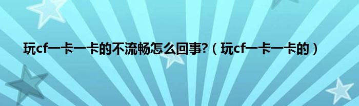以上就是【玩cf一卡一卡的不流畅怎么回事?,玩cf一卡一卡的】相关内容。