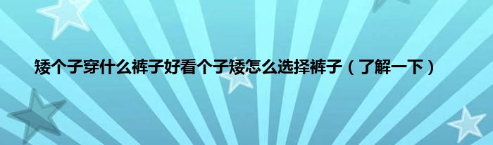 欢迎观看本篇文章,小升来为大家解答以上问题。矮个子穿什么裤子好看个子矮怎么选择裤子,了解一下很多人还不知道,现在让我们一起来看看吧!