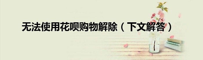 欢迎观看本篇文章,小升来为大家解答以上问题。无法使用花呗购物解除,下文解答很多人还不知道,现在让我们一起来看看吧!