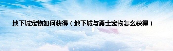 地下城宠物如何获得(地下城与勇士宠物怎么获得)