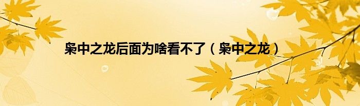 以上就是【枭中之龙后面为啥看不了,枭中之龙】相关内容。