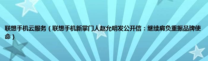 大家好,综合小编来为大家讲解下联想手机云服务,联想手机新掌门人赵允明发公开信:继续肩负重振品牌使命这个很多人还不知道,现在让我们一起来看看吧!