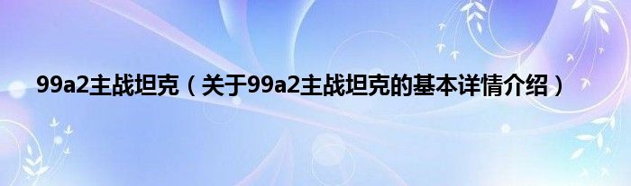 本文关于99a2主战坦克的基本详情介绍就讲解完毕,希望对大家有所帮助。