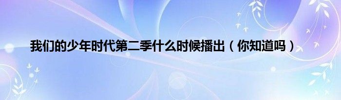 欢迎观看本篇文章,小升来为大家解答以上问题。我们的少年时代第二季什么时候播出,你知道吗很多人还不知道,现在让我们一起来看看吧!
