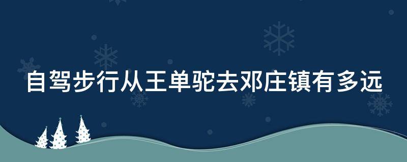 自驾步行从王单驼去邓庄镇有10公里左右,也可乘坐公交前往。王单驼村位于河北省衡水市桃城区邓庄镇,与张单驼村、孙单驼村、艾单驼村、武家庄村、大成村、曹家庄村、许家庄村、前邢疃村、西军卫村、中邢疃村、东军卫村、东邢疃村、张泡庄村、石辛庄村相邻。邓庄镇,隶属于河北省衡水市桃城区,区域面积99.95平方千米。邓庄镇境内河道属海河流域,流域面积31.82万平方千米。主要河道有滏阳新河、滏东排河、索泸鲁河3条河。