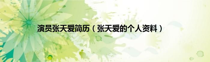 欢迎观看本篇文章,小升来为大家解答以上问题。演员张天爱简历,张天爱的个人资料很多人还不知道,现在让我们一起来看看吧!