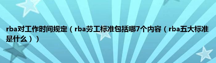 大家好,综合小编来为大家讲解下rba对工作时间规定,rba劳工标准包括哪7个内容,rba五大标准是什么这个很多人还不知道,现在让我们一起来看看吧!