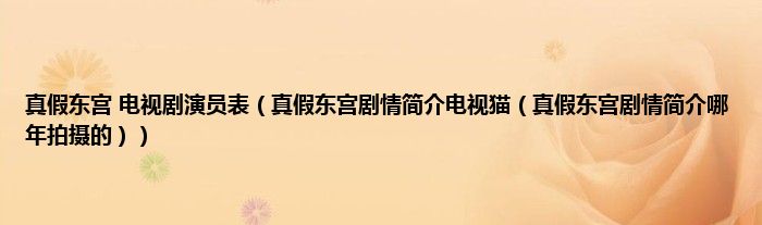 大家好,综合小编来为大家讲解下真假东宫 电视剧演员表,真假东宫剧情简介电视猫,真假东宫剧情简介哪年拍摄的这个很多人还不知道,现在让我们一起来看看吧!