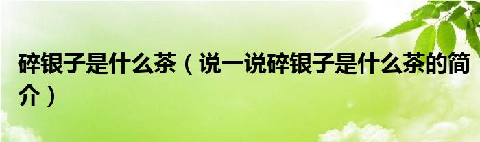 碎银子是什么茶(说一说碎银子是什么茶的简介)