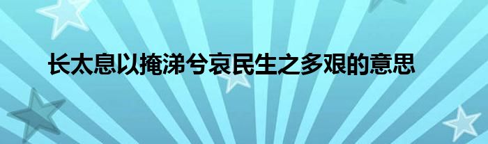 出自战国时期楚国的大诗人屈原的《离骚》。  意思是,我常常长声叹息,甚至掩面哭泣,哀伤人民生活命运的艰难。  《离骚》是战国诗人屈抒情长诗。《离骚》以理想与现实的冲突为主线,以花草禽鸟的比兴和瑰奇迷幻的“求女”神境作象征,借助于自传性回忆中的情感激荡,和复沓纷至、倏生倏灭的幻境交替展开全诗。作品倾诉了对楚国命运和人民生活的关心,“哀民生之多艰”,叹奸佞之当道。主张“举贤而授能”,“循绳墨而不颇”。提出“皇天无私阿”,对天命论进行批判。作品中大量的比喻和丰富的想像,表现出积极浪漫主义精神,并开创了中国文学上的“骚”体诗歌形式,对后世有深远影响。  屈原(前340一前278),名平,楚国人,楚王同姓贵族。早年深得怀王信任,官左徒和三闾大夫。由于贵族保守集团的反对,终遭失败,被怀王疏远,放逐汉北。当楚国首都郢被秦兵攻破时,他在彷徨苦闷、悲愤忧郁的心情中投汨罗江自沉。作品有《离骚》、《天问》、《九歌》、《九章》、《招魂》等篇,从不同的方面艺术地表达了他热爱祖国的深切情怀。
