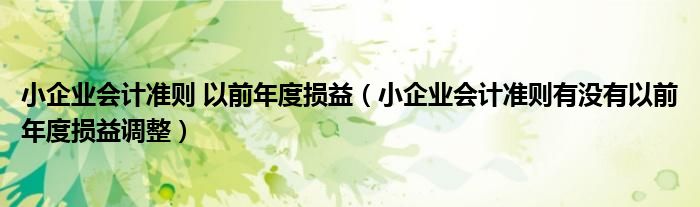 关于小企业会计准则 以前年度损益,小企业会计准则有没有以前年度损益调整这个很多人还不知道,今天菲菲来为大家解答以上的问题,现在让我们一起来看看吧!