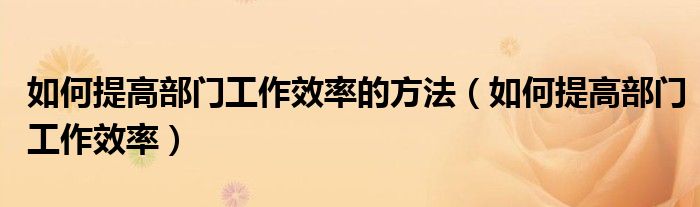 关于如何提高部门工作效率的方法,如何提高部门工作效率这个很多人还不知道,今天菲菲来为大家解答以上的问题,现在让我们一起来看看吧!