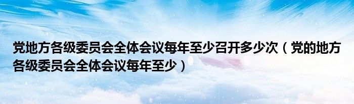 关于党地方各级委员会全体会议每年至少召开多少次,党的地方各级委员会全体会议每年至少这个很多人还不知道,今天菲菲来为大家解答以上的问题,现在让我们一起来看看吧!