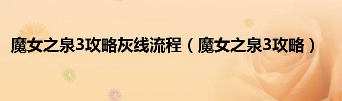 魔女之泉3攻略灰线流程(魔女之泉3攻略)