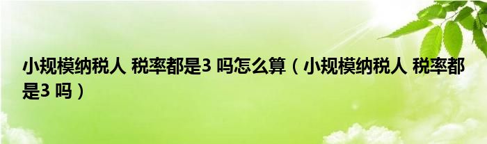 关于小规模纳税人 税率都是3 吗怎么算,小规模纳税人 税率都是3 吗这个很多人还不知道,今天菲菲来为大家解答以上的问题,现在让我们一起来看看吧!