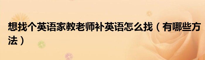 想找个英语家教老师补英语怎么找(有哪些方法)