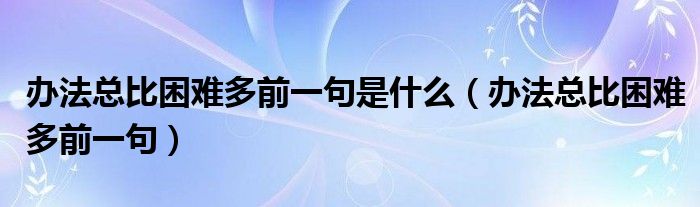 关于办法总比困难多前一句是什么,办法总比困难多前一句这个很多人还不知道,今天菲菲来为大家解答以上的问题,现在让我们一起来看看吧!