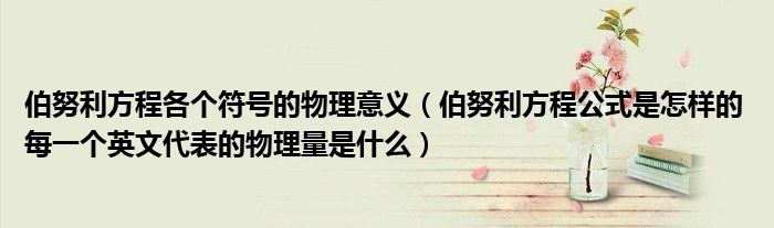 伯努利方程各个符号的物理意义(伯努利方程公式是怎样的每一个英文代表的物理量是什么...