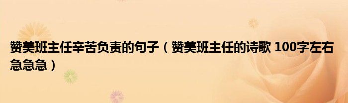 赞美班主任辛苦负责的句子(赞美班主任的诗歌100字左右急急急)