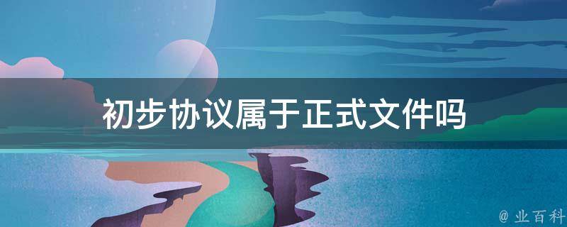 初步协议不属于正式文件。初步协定是一种草签性质的协定,是在正式协议或合同签署之前的一个阶段,用于确立合作意向、条款、条件的草稿。初步协议通常是双方初步协商的产物,用于进一步讨论和细化具体内容,以便达成最终的正式协议或合同。