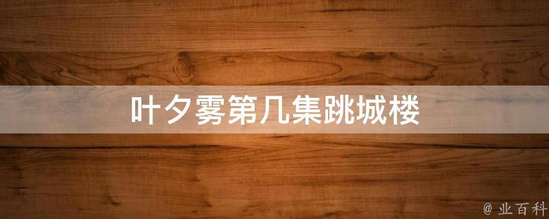 叶夕雾第28集跳城楼。在这一集中,叶夕雾和叶冰裳被澹台明朗绑架用来威胁澹台烬,逼迫他二选一。澹台烬想到双生阴阳镯会护着叶夕雾,于是选择了叶冰裳,这时候雷劫降临,叶夕雾用仙髓换取澹台烬邪骨。叶夕雾的双生阴阳镯被雷劫击碎,她也从高楼坠落而亡。