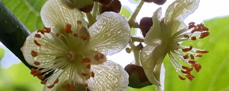 猕猴桃花有味道。猕猴桃花芳香宜人,可提取香料,尤为雄花最佳。花开时呈乳白色,之后会变成淡黄色,直径1.8-3.5厘米,单生或数朵生于叶腋。花序一般3花,花序柄长4-6毫米,花柄长7-11毫米;苞片披针形,长2毫米,均为黄褐色短绒毛。