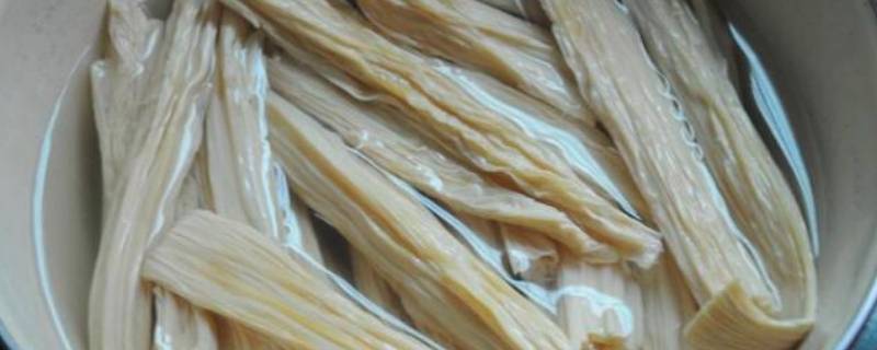 将干腐竹掰成小段放在盆中,加入70度左右的温水,加一点食盐和白醋。然后拿一个盘子倒扣在盆中,泡3分钟。时间到后,取出盘子即可。