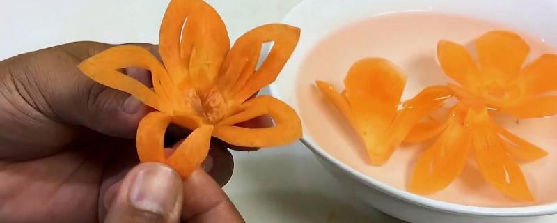 5、整理好花瓣,摆入盘中,以香菜叶、胡萝卜丝装饰即可。