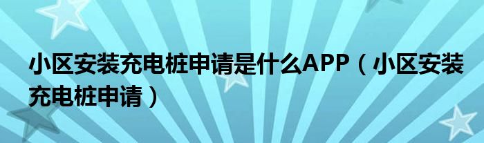 关于小区安装充电桩申请是什么APP,小区安装充电桩申请这个很多人还不知道,今天菲菲来为大家解答以上的问题,现在让我们一起来看看吧!