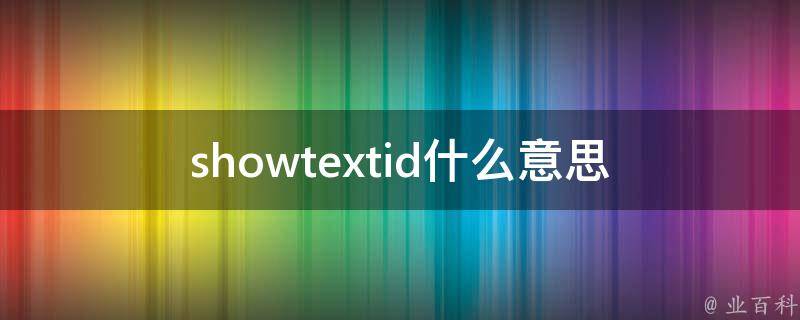 showtextid意思是显示文本id,这个标识符通常用于三星手机的操作系统中,用于标识需要显示的文本内容。通过使用showtextid,用户可以方便地在三星手机上显示各种文本信息,如通知、提示等。同时,开发者也可以根据需要进行相关的扩展和定制,以满足不同的显示需求。