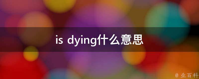 is dying意思是快死了,例句:Should he tell a patient he is dying?英语是按照分布面积而言最流行的语言,但母语者数量是世界第三,仅次于汉语、西班牙语。它是学习最广泛的第二语言,是近60个主权国家的官方语言或官方语言之一。