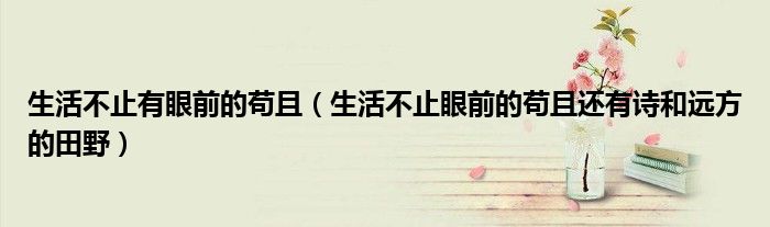 关于生活不止有眼前的苟且,生活不止眼前的苟且还有诗和远方的田野这个很多人还不知道,今天菲菲来为大家解答以上的问题,现在让我们一起来看看吧!