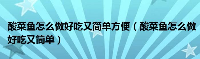 关于酸菜鱼怎么做好吃又简单方便,酸菜鱼怎么做好吃又简单这个很多人还不知道,今天菲菲来为大家解答以上的问题,现在让我们一起来看看吧!