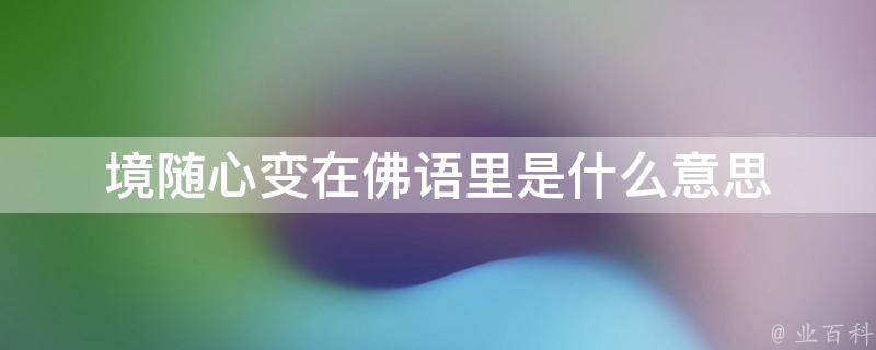 境随心变在佛语里的意思是一个人的环境或状态会随着他的内心变化而变化。这个概念源于佛家的智慧,意在引导人们正确看待人生,探究内心的真实感受与表象之间的关系。佛教认为,念头无所不在,对境的看法就是由心态所决定的。