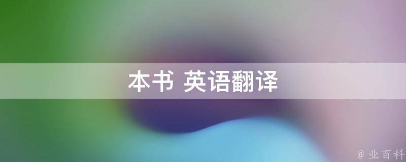 本书英语翻译为This book,例句:She has more claim to the books success than anybody(她为这本书的成功立了头功)。翻是指的这两种语言的转换,即先把一句甲语转换为一句乙语,然后再把一句乙语转换为甲语;译是指这两种语言转换的过程,把甲语转换成乙语,在译成当地语言文字的过程中,进而明白乙语的含义。