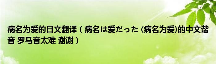 病名为爱的日文翻译(病名は爱だった(病名为爱)的中文谐音罗马音太难谢谢)