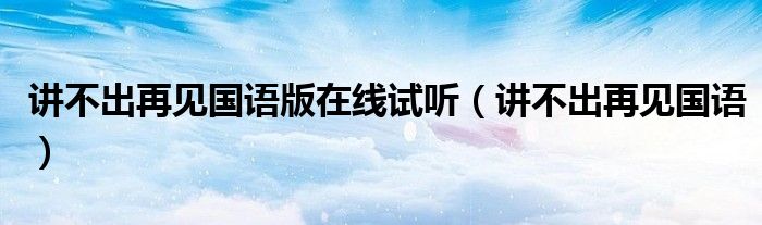 大家好,我是小科,我来为大家解答以上问题。讲不出再见国语版在线试听,讲不出再见国语很多人还不知道,现在让我们一起来看看吧!