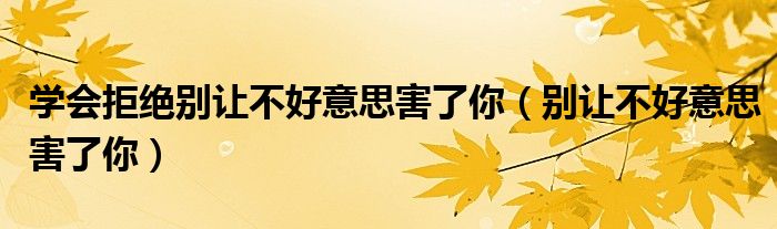 大家好,我是小科,我来为大家解答以上问题。学会拒绝别让不好意思害了你,别让不好意思害了你很多人还不知道,现在让我们一起来看看吧!