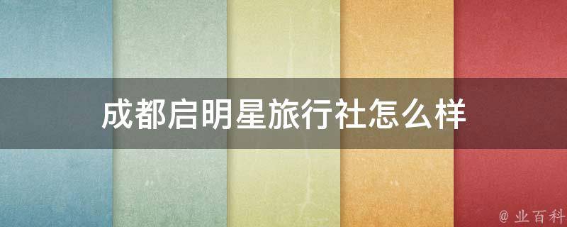 成都启明星旅行社是一家服务周到、专业性强、综合实力不错的旅行社。成都启明星旅行社在旅游行业是比较有名气的,其服务态度好、专业水平高、旅行线路合理、收费透明合理、导游服务周到、价格亲民,是一家集旅游服务、酒店预订、会议接待、票务服务、旅游汽车出租、入境接待和旅游保险代理等业务于一体的综合性旅游企业。