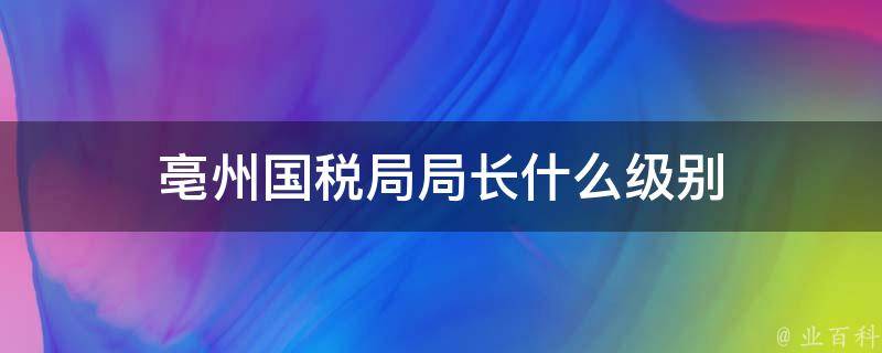亳州国税局局长什么级别