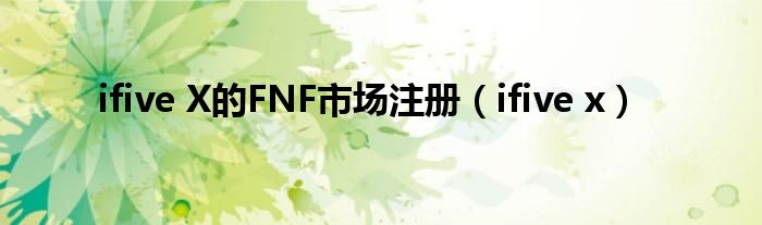 今天小饼为大家解答以下问题,关于ifive X的FNF市场注册,ifive x很多人还不知道,现在让我们一起来看看吧!