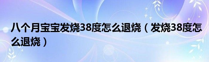 大家好,乐天来为大家解答以下的问题,八个月宝宝发烧38度怎么退烧,发烧38度怎么退烧很多人还不知道,现在让我们一起来看看吧!