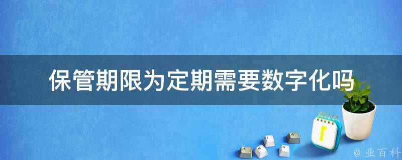 保管期限为定期需要数字化。数字化可以有效地保护档案原件,并且可以长期保存,方便查阅。同时,数字化还可以提高档案的利用效率,方便进行档案的整理和归纳。数字化是将信息转换为数字(即计算机可读)格式的过程,是指将任何连续变化的输入如图画的线条转化为一串分离的单元,在计算机中用0和1表示。