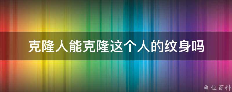 克隆人不能克隆这个人的纹身。克隆人是指通过克隆技术创造出来的与原有基因组完全相同的个体,而纹身的图案和形状是通过刺绣的方式将色素注入皮肤中形成的,与细胞的基因组没有任何关系。因此,克隆技术无法复制纹身的图案和形状。