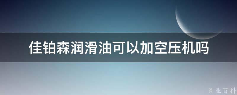 最佳答案佳铂森润滑油不可以加空压机。佳铂森润滑油是一款用于工业润滑的润滑油,其适用范围并不包括空压机。空压机需要使用专用的空压机油,这种机油具有特殊的化学性质和成分,可以满足空压机的润滑、冷却、密封等需求。如果将佳铂森润滑油加入空压机中,可能会导致空压机的内部零件磨损、润滑不良、甚至...