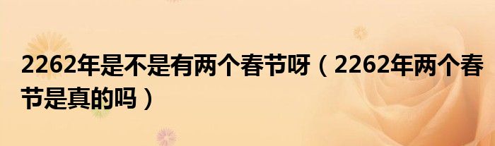 大家好,小虎来为大家讲解下。2262年是不是有两个春节呀,2262年两个春节是真的吗很多人还不知道,现在让我们一起来看看吧!